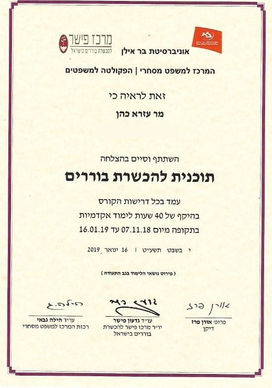 2018 – בוגר קורס בוררים מכון פישר ואונ' בר-אילן.